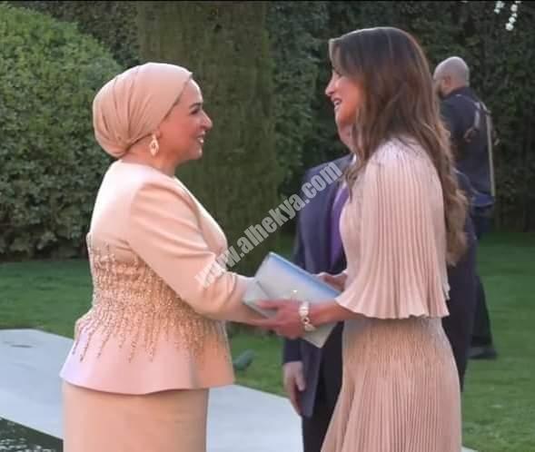 بالصور.. السيدة انتصار السيسي وابنتها تشارك في حفل زفاف الأميرة إيمان كريمة ملك الأردن