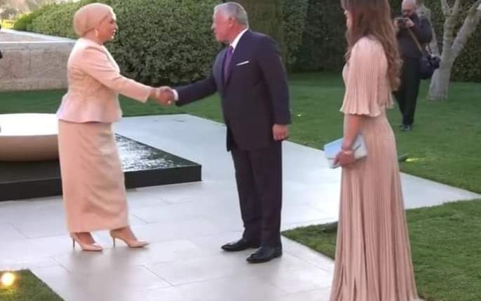 بالصور.. السيدة انتصار السيسي وابنتها تشارك في حفل زفاف الأميرة إيمان كريمة ملك الأردن
