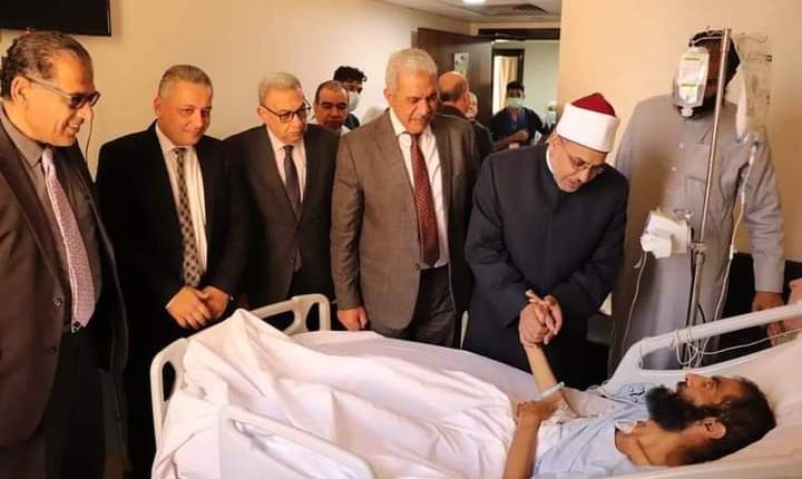 وبالفعل قد زاره اليوم رئيس جامعة الأزهر في المركز الطبي للمقاولين العرب للاطمئنان عليه وتبلغيه بقرار الإمام الأكبر بتحمل الجامعة كافة نفقات علاجه متمنين له الشفاء العاجل بإذن الله.