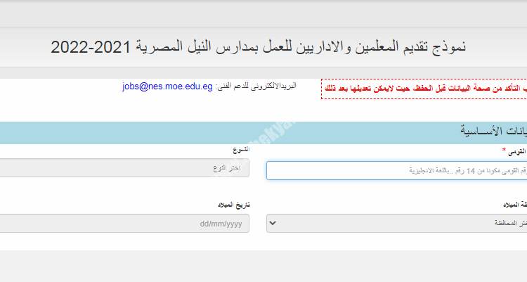 وزارة التربية والتعليم تعلن نموذج تقديم المعلمين والاداريين والاخصائيين للعمل بمدارس النيل المصرية بالمحافظات للعام الجديد 2021 / 2022