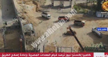 دخول المعدات المصرية لإصلاح طريق معبر رفح في الجانب الفلسطينى