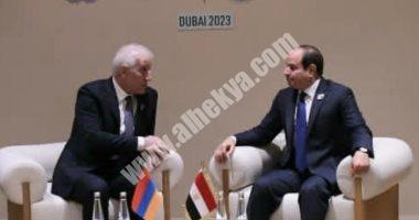 الرئيس السيسى يلتقى نظيره الأرمينى فى دبى ويتفقان على دفع مسيرة التعاون